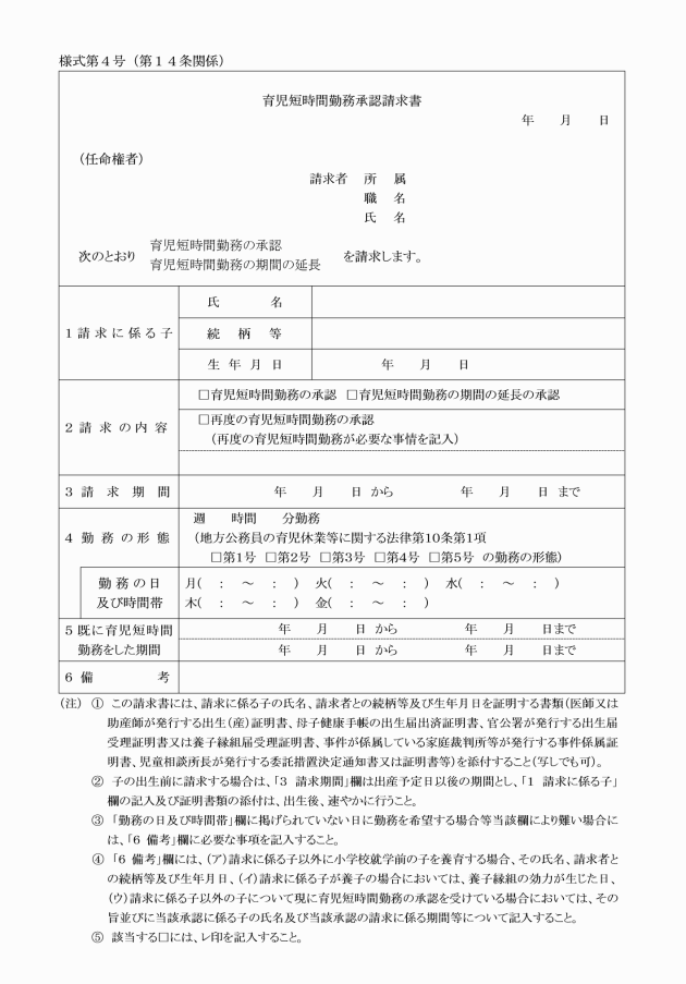 第18条 部分休業の承認の請求は、部分休業承認請求書(様式第5号)により、原則として部分休業を始めようとする日の1月前までに行うものとする。